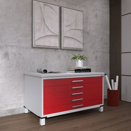 Organize e preserve seus projetos, mapas, plantas e documentos de grande formato com a Mapoteca em Aço com 5 Gavetas da Pandin. Fabricada com estrutura reforçada em aço de alta qualidade, esta mapoteca garante durabilidade, segurança e um excelente aproveitamento de espaço.