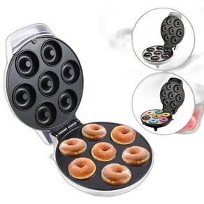Máquina para fazer 7 donuts/rosquinhas por vez. Possui aquecimento de dupla face para cozimento uniforme e superfície antiaderente para facilitar a limpeza. Inclui receitas de exemplo.Chapa antiaderente