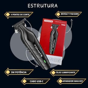 A máquina de cortar cabelo sem fio bivolt da marca tomate é a opção perfeita para quem busca comodidade e alto desempenho. Com um formato ergonômico e funcionamento sem fio, oferece total liberdade durante o uso, sendo ideal para cortes tanto em casa quanto em viagens. O modelo mag-027 possui potência de 5 w e vem equipado com uma bateria recarregável, garantindo funcionamento contínuo e eficiente. Acompanha cabo usb para carregamento, escova para limpeza, quatro pentes com diferentes medidas e óleo lubrificante - tudo o que você precisa para um corte preciso e de qualidade. Pensada para quem preza por eficiência e praticidade, esta máquina é um excelente complemento para sua rotina de cuidados pessoais. Especificações técnicas: Voltagem: 110-220v bivolt automático Potência: 5w Tempo de recarga: 1,5 horas Tempo de uso contínuo: até 100 minutos Material: lâmina de aço carbono Conteudo da embalagem: 1 x máquina cortar cabelo 1 x cabo usb 1 x escova de limpeza 1 x tubo de óleo 4 x pentes 1 / 3 / 5 / 7 mm :: prazo de envio Após a confirmação do pagamento em :: atendimento Caso tenha dúvidas, utilize os canais de atendimento. Possuímos uma equipe altamente qualificada para respondê-los a rapidamente. :: pós-venda Não tenha dúvidas nós vendemos bem para vendermos sempre conte com nosso Atendimento em horário comercial sempre que precisar. :: dicas de compra 1. Leia todo o anúncio antes de comprar. 2. Verifique se seus dados de contato estão atualizados no momento da compra. 3. Confira o seu endereço de recebimento, pois não temos como alterá-lo. :: Este produto possui de 3 meses contra defeitos de fabricação á partir do Recebimento. Para acionar a será necessário enviar o produto de volta junto com Suas embalagens recebidas, por isso é de suma importância guardar e conservar as embalagens. Marca: Não Informado Ean: 7804721767265