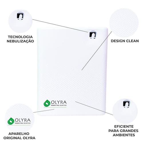 a máquina olyra intense, para aromatização e marketing olfativo, é o equipamento ideal para os seus ambientes com alta tecnologia e modernidade, você pode programar o dia e horário que você deseja que sua maquina funcione. Benefícios: