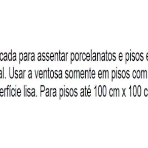 DescriçãoAPLICAÇÕES / DICAS DE USOIndicada para assentar porcelanatos e pisos emGeral. Usar a ventosa somente em pisos comSuperfície lisa. Para pisos até 100 cm x 100 cm.Bateria indicada para reposição: 93.24.120.001DESTAQUES DIFERENCIAISEquipamento prático e eficiente, tornando aInstalação rápida. Possui alto poder de sucçãoE vibração. Conta com 5 níveis para regulagemDe vibração com identificação no display,Proporcionando maior controle de acordo com aAplicação. Além de punho auxiliar,Proporcionando maior facilidade e ergonomiaNo manuseio do equipamento.CARACTERÍSTICASAceleração transmitida nas mãos - braços do operador - ah 1 nível: 32 m/s; 2 nível: 53 m/s; 3 nível: 75m/s; 4Nível: 110 m/s; 5 nível: 190 m/sTipo de bateria Íons de Lítio 12V - 2,2 AhNível de ruído (dB) Sem carga: 60dB(A) / Com carga: 80dB(A)Capacidade de carga 50 kgfPotência do motor 180 WTensão de saída da fonte 12 V DCTempo de carregamento 2 horasIncerteza da aceleração transmitida nas mãos - braços doOperador - k1,5 m/sNúmero de vibrações por minuto (vpm) 1 nível: 1.500/min; 2 nível: 3.200/min; 3 nível: 4.200/min; 4 nível: 4.800/min; 5 nível: 6.000/minTensão de entrada da fonte 100 V - 240 V - Bivolt automáticoDimensões 390 mm x 145 mm x 135 mmModelo MAP 125Tipo da EmbalagemMaleta plástica.CONTEÚDO1 Máquina de assentar piso com ventosa. Acompanha: 1 maleta plástica, 1 bateria 12 V e 1 fonte bivolt automático