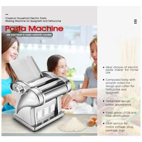 Apresentamos a incrível Máquina de Fazer Massas elétrica, perfeita para produzir massas frescas em casa! Feita em aço inoxidável de alta qualidade, esta máquina de macarrão elétrica oferece a possibilidade de preparar noodles finos de 1,5 mm e noodles largos de 4 mm. Com um motor potente de 135W, é rápida, segura e confiável. Possui 6 ajustes de espessura, tornando-a versátil e fácil de operar. Além de massas, essa máquina incrível também pode ser usada para fazer dumplings e outros tipos de massas frescas. Aproveite a qualidade e praticidade desta máquina de fazer massas automática!