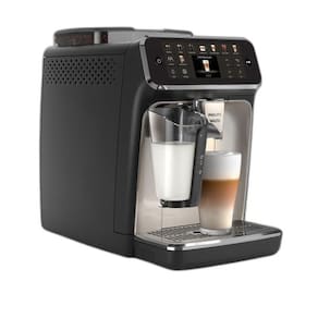 Cafeteira Espresso Superautomática LatteGo Série 5500 Philips Walita EP5547 com painel touchscreen intuitivo, perfis de usuário personalizáveis (até 4), função Extra Shot, design elegante em preto e cromado, estrutura compacta, preparo rápido com 1400W de potência, compatível com grãos e café moído, sistema de economia de energia, limpeza simplificada com peças removíveis laváveis na máquina de lavar louça.Moedor de café integrado