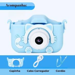 Maquina Câmera Fotográfica Infantil Gatinho Tira Foto Azul