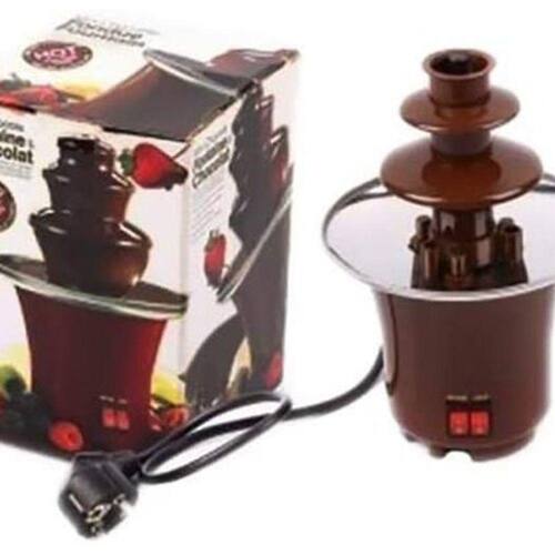Máquina Chocolate Fondue Elétrica Mini Chocolate Fondue Fountain Heating Electric Machine Bd-017 Máquina de fondue elétrica. Fonte de chocolate super fácil de usar O chocolate já derretido é colocado na bandeja e o parafuso no interior da torre impulsiona o chocolate através da torre, formando uma cascata. Você pode utilizar garfinhos para passar as frutas, biscoitos etc. Basta usar a criatividade, passar pela calda e o alimento fica coberto de chocolate, uma verdadeira delícia Perfeita para todas as ocasiões. Estilo cascata, impressione suas visitas.