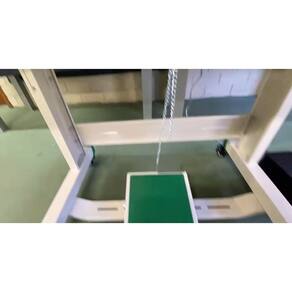 Máquina de coluna trasporte triplo com rodízio rotativo superior e inferior, com uma agulha. Ideal para costurar luvas de raspas e palmilhas de sandálias. As máquinas acompanham estante com regulagem de altura que seguem os padrões de conforto e ergonomia para o operador, além de tampo em madeira revestido em fórmica com régua graduada.