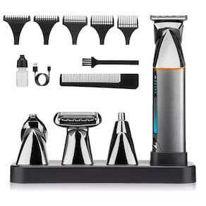Máquina 9x1 Acabamento Corte Cabelo Barba Aparador de Pelos Nariz Elétrico Recarregável Produto com alta qualidade premium, motor com alta potência de 5w e durabilidade, além de uma lâmina eficaz e afiada. 4 lâminas magnéticas que facilita a troca e uso para atender qualquer necessidade. - Aparador de cabelo: Para um acabamento ultrafino de 0.2mm. Use com guias de pente para comprimentos de corte de 1/2/3/6/9mm. - Aparador de detalhes: Define linhas e bordas retas ou curvas. - Aparador barbeador de folha: Para finalizar bordas e linha do cabelo com um barbeador rente. - Aparador de nariz e orelha: Lâmina para corte rente seguro e suave. Informações adicionais: - Bateria recarregável integrada - Uso sem fio e com fio - Cabeças de encaixe e trava de troca rápida - Lâminas de corte de aço inoxidável - Acessórios laváveis e fáceis de limpar - Luz indicadora de funcionamento e carregamento - Entrada: 5V --- 1A Potência: 5W - 1.5 horas de carregamento e 100 minutos de uso. Itens inclusos: 1. Lâmina para cabelo 2. Lâmina para detalhes 3. Lâmina para barba 4. Lâmina para nariz e orelha 5. Pente 1mm 6. Pente 2mm 7. Pente 3mm 8. Pente 6mm 9. Pente 9mm + Escova, vassoura, óleo lubrificante e carregador. Marca: Não Informado