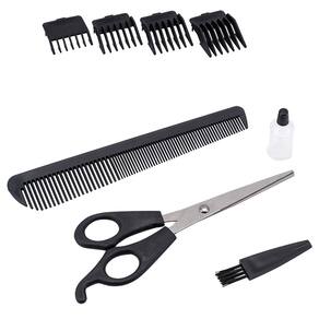 Acessórios incluídos: 1 Cortador de Cabelo, 4 Ponteiras de Corte, 1 Tesoura, 1 Pente, 1 Escovinha de Limpeza, 1 Frasco de Lubrificante