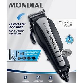 A Mondial é a marca dos eletroportáteis de maior sucesso no mercado. É líder em design e variedade de produtos. Possui uma linha de itens essenciais para sua casa, diversão e beleza. Apresentamos o cortador de cabelos. Ele lhe proporciona alto padrão de eficiência e qualidade, garantindo sucesso no corte do seu cabelo. Possui acabamento e lâminas super-resistentes em aço Inox, alta potência e alavanca de ajuste para regular a altura do corte. Possui com 2 lâminas, 4 pentes, 1 tesoura, 1 escova de limpeza, 1 capa protetora de lâminas e 1 óleo de manutenção. Seu cortador foi cuidadosamente alinhado na fábrica, mas se o alinhamento estiver errado você pode ajustá-lo de acordo com seu gosto. Da mesma forma com as lâminas, que devem ser realinhadas se removidas para a limpeza ou substituição. Design super moderno, pequeno, cabe em uma pequena nécessaire, e foi usada ama combinação das cores preto com prata. Cortar ou aparar os seus cabelos pode ser mais rápido do que você imagina. Basta liga-a na energia elétrica e usá-la com a maior facilidade, em qualquer lugar.