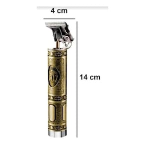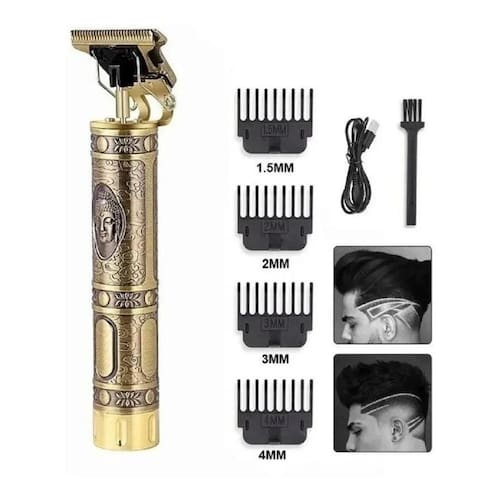 Única lâmina super afiada em forma de t para cortar o cabelo com segurança e rapidez.Desempenho de causar inveja, motor de cobre estável e confiável.Aparência retro de buda.Itens inclusos no pacote:- 1 maquininha buda- 4 pentes de corte, tamanho 1, 2, 3 e 4.- 1 mini óleo lubrificante- 1 cabo usb para carregamentoficha técnica- bateria: 1200mah;- potência: 5w;- método de carregamento: carregamento usb / elétrico;- tempo de carregamento: 3 horas;- tempo de uso: 2 horas;- método de carregamento: carregador usb;- peso: 0,4 kg.Vbm variedades Marca: Shopbr