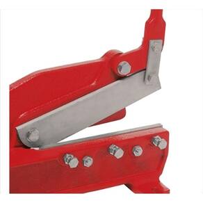 Máquina de cortar chapa ferramenta de fácil operação evitando desgastes físico ao operador. Utilizado para corte de chapa de aço com dureza máxima de 35HRC, proporcionando cortes retos e sem rebarbas. Corpo em ferro fundido nodular FE 50007 e lâminas em aço temperado 5160 permitindo ajuste fácil para troca das lâminas após o desgaste.