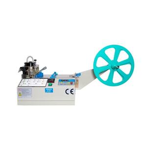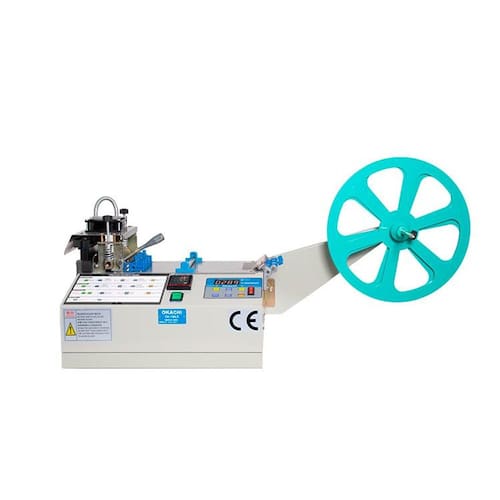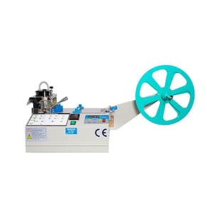 Máquina automática digital para corte de fitas e elásticos em diversos materiais, como: cetim, nylon, couro, fecho aderente, zípper plástico, cadarço, entre outros.