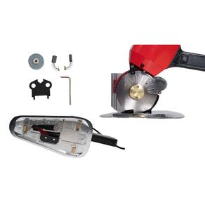 Máquina de corte com disco octagonal de 4 polegadas, para corte de tecidos e enfestos. Com capacidade de corte de até 2,5cm e potência de 300W.