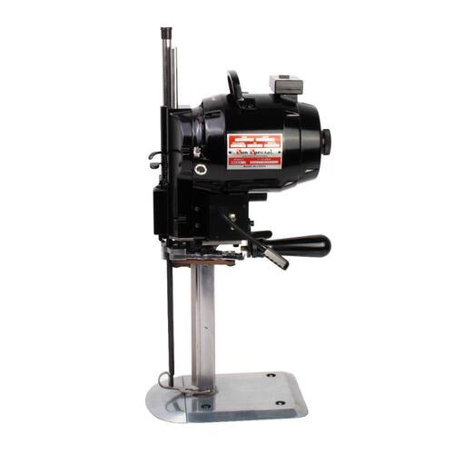 Máquina de corte com faca de 6 polegadas, ideal para cortar tecidos em pilhas e enfestos. Possibilita fazer curvas com diâmetros estreitos e tem capacidade de corte de até 11cm.