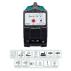 A fonte de corte a plasma vulcano cut 62 é indicada para o corte dos mais variados tipos de metais, ferrosos e não ferrosos, tais como aço carbono, cobre, alumínio, latão, etc. Possui capacidade de corte recomendada de 16mm 5/8 e capacidade de corte máxima de 30mm 1.1/8