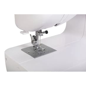 Conteúdo Embalagem: Calcador de zigue zague/universal (acoplado na máquina), Calcador para casa de botão em 4 passos, Kit de Agulhas, Bobinas, Abridor de caseado/Escova para limpeza, Feltro para Porta Carretel, Pedal eletrônico, Capa para máquina e Manual de instruções em português.