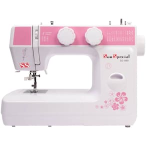 Características: Abaixa o transporte para pregar botões e quilting livre, caseado de botão em 4 passos, retrocesso, ajuste manual do comprimento e largura do ponto, braço livre para costuras tubulares, lançadeira e caixa de bobina em aço de alta qualidade, enchedor de bobina com limitador e suporte de carretel retrátil com guia linha.