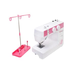 Conteúdo Embalagem: Calcador de zigue zague/universal (acoplado na máquina), Calcador para zíper, Calcador para casa de botão de 4 Passos, Calcador para pregar botão, Guia para costura reta ou bainha invisível, Kit de agulhas, Bobinas, Agulha dupla, Chave de fenda, Abridor de casa de botão/Escova para limpeza, Capa para máquina, Pedal eletrônico e Manual de instruções em português.