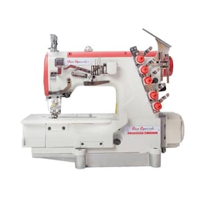 Máquina Costura Industrial Galoneira Plana Fechada SS858D-01-CBX-3674-ST – Sun Special – Direct Drive – Parada de Agulha – Controle de velocidade – Potência: 550W – Tensão: 220V – Velocidade: 5000 ppm – Comprimento do Ponto: 1~ 4,4mm – Bitola: 6,4mm – 03 agulhas – 05 agulhas – Tipo de Agulha: UY128GAS – Número de Fios: 05 – Altura do calcador: 5 mm – Lubrificação Automática Acompanha mesa e motor. Montagem e Regulagem por conta do cliente.