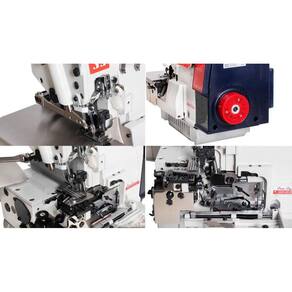 Utilizada em praticamente todos os segmentos de costura em roupas, em tecidos leves e médios (ajustando o kit de chapa e calcador).