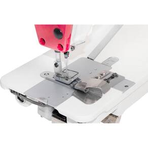 Máquina de costura industrial reta, ponto corrente, 2 agulhas, base plana, indicada para diversos trabalhos.