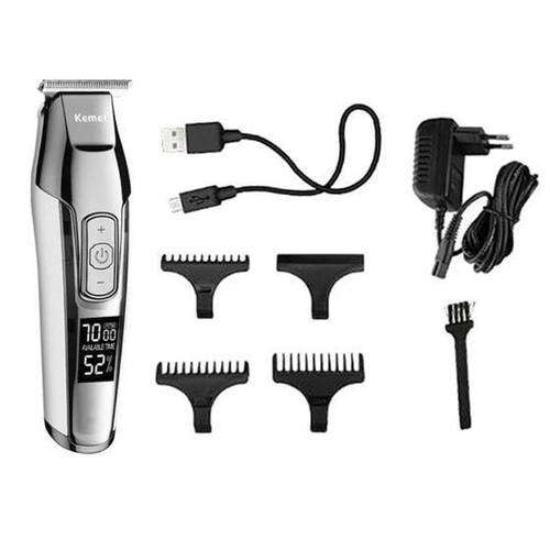 Máquina De Acabamento E Barba Profissional Kemei KM-5027 A Kemei KM-5027 pode ser utilizada tanto como uma máquina de acabamento ou aparador de pelos, é bem potente e se diferencia dos outros modelos. Essa em especial tem botões de ajuste de rotação do motor na parte frontal, você pode ajustar para cortar mais rápido ou devagar. Pode-se visualizar qual rotação está escolhida no visor da máquina.
