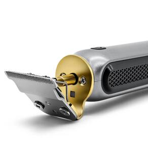 Seu design prático e ergonômico em apenas 128 gramas, possui Lâmina Slim em aço inoxidável com conceito aberto, que permite uma visão 360º do trabalho de corte, contorno, barba e acabamento.