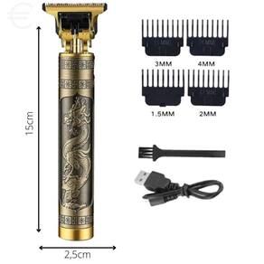 Máquina de Acabamento Profissional em Metal Dragão, proporciona um Barbear Suave e uniforme em poucos segundos, com lâminas mais avançadas do mercado e máxima precisão sem enroscar ou puxar nenhum fio.