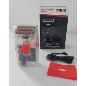 para finalizar cortes, barba velocidade de rotação: 6800rpm duas cabeças alternativas e flutuantes. Bateria de lítio: 600 mah potência: 3. 7v, 5w. 1,5 horas de carga completa tempo de uso 120 minutos. Capa removível com grade, conveniência para limpar e substituir a cabeça da lâmina. Cor: transparente marca: wmark modelo: ng987t
