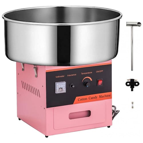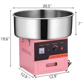 Máquina Elétrica de Algodão Doce, 1000W de potência opera em 110V , 60HzFaça aquecimento rápido, algodão doce rápido e SEM espera. Tigela de aço inoxidável de para alimentos s, fácil de limpar e uso duradouro. A divertida máquina de algodão doce permite que você traga aquele clima festivo para o conforto de sua própria casa ou quintal. Controles simples e fáceis de usar para iniciantes. Perfeito para festas, carnavais, eventos esportivos tornando qualquer evento especial