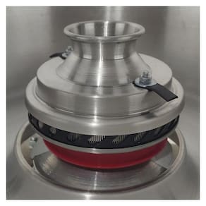 Tampa da turbina em forma de funil, facilitando o abastecimento do açúcar e eliminando o desperdício.