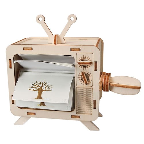 Material: madeira Tamanho: 14,5 × 7 × 13 cm Peso: Kit de máquina de animação 106GDIY — As crianças montam uma caixa de animação de madeira com manivela, aprendendo como imagens estáticas criam imagens em movimento por meio da persistência da visão. Projeto educacional STEM — Apresenta conceitos de óptica, mecânica e movimento, ao mesmo tempo em que aprimora a resolução de problemas e a criatividade por meio de experimentos científicos práticos. Estrutura de madeira durável — Feita de madeira ecológica com peças de precisão cortadas a laser, segura para crianças montarem e usarem em experimentos repetidos. Aprendizagem interativa e divertida — Incentiva as crianças a explorarem os princípios da animação precoce, melhorando o pensamento lógico e as habilidades motoras finas. Perfeito para escola e casa — Ótimo para feiras de ciências, demonstrações em sala de aula ou programas STEM após as aulas, projetados para meninos e meninas de 8 a 14 anos.