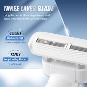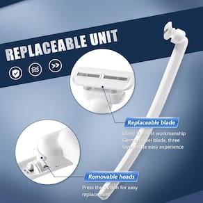 - Mais rápido, seguro e suave: nossos barbeadores masculinos são feitos do melhor aço alemão e usam uma tecnologia patenteada exclusiva para o barbear mais simples e suave. Nossos aparadores traseiros masculinos têm uma tira antiderrapante exclusiva que pode ser amaciada com água. Escove as costas para remover o cabelo sem causar dor.