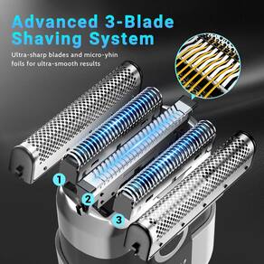 - Barbeadores elétricos de 3 lâminas para homens: Projetado com um sistema de lâmina otimizado, os barbeadores elétricos masculinos LYRSLF para barbear o rosto combinam duas lâminas de barbear com uma lâmina longa para aparar a barba. Ele apara barba curta e longa sem esforço, proporcionando um barbear suave e eficaz. As três cabeças de lâmina e o motor de alta velocidade (8.500 RPM) deste barbeador elétrico masculino garantem um barbear rápido e preciso