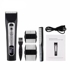 Máquina de cortar cabelo elétrica profissional para homens, barbeador recarregável, cortador de cabelo, aparador digital, barbeiro, poderosa máquina de modelar cabelo. Lâmina em cerâmica de liga de titânio, cabeça de corte de aço precisa. Grande potência para corte eficiente e estável com baixo nível de ruído. Design compacto e elegante com texturas. Inclui 2 pentes limitados (6mm, 4.5mm, 3mm, 1.5mm). Lâmina ajustável (1mm, 1.3mm, 1.6mm, 1.9mm). Portátil e leve (14,4 x 4 cm).Vendido e entregue por NOCNOC ASÍA