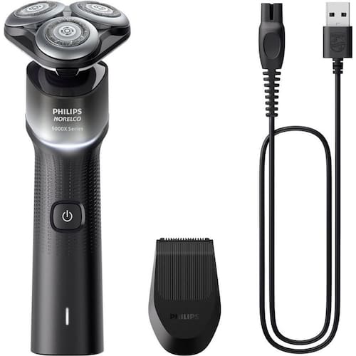 O barbeador rotativo oferece um barbear poderoso, mas confortável, com proteção extra para a pele. Além disso, é a primeira máquina de barbear Philips Norelco a funcionar sozinha. Bateria de lítio recarregável para potência máxima consistente. Barbeie até 50 minutos sem fio com uma carga de 1 hora. Carga rápida de 5 minutos para um barbear. O revestimento protetor SkinGlide com 100.000 microesferas por centímetro quadrado melhora o deslizamento em 20% ** para minimizar a irritação da pele. Cabeças totalmente flexíveis giram 360° para seguir seus contornos faciais. Experimente um contato ideal com a pele para um barbear completo e agradável à pele. Inclui: barbeador elétrico, cabo de alimentação USB A (adaptador de alimentação de parede não incluído) e tampa protetora. A embalagem mudou de plástico para papel.