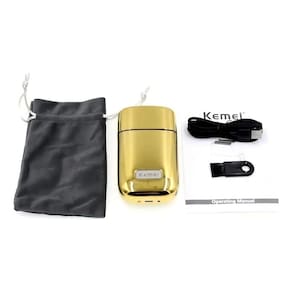 Barbear preciso: lâminas de barbear -cabeça, folha de titânio flutuante larga, para um barbear mais próximo e mais eficiente. Bateria grande: a bateria de lítio-íon 1000 mah fornece 120 minutos de tempo de execução por até 2 horas por carga, especialmente o porto tipo-c é conveniente. Todo o escudo mental: o corpo elegante e bonito fornece uma experiência mais confortável e durável, nenhuma queimadura da lâmina ou irritação da pele. Design de viagem: fácil de transportar, carregamento é conveniente e rápido, barbear em movimento, ideal para acabamento de restolho e cortes de cabelo de estilo fade. Acessórios inclusos: para sua conveniência, a kemei tx1 vem com todos os acessórios que você precisa. O pacote inclui o barbeador, cabo usb, escova de limpeza, saco de viagem e instruções de operação. Marca: KEMEI Modelo do produto: TX1 Cor: dourado / Prata Material: ABS + aço inoxidável Tensão: 110-240V 50Hz/5W Tempo do carregador: 2 horas Tempo de utilização: 120 min Embalagem