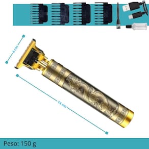 Descrição do anúncio: A máquina de cortar cabelo e barba golden dragon oferece cortes precisos e sem irritações, com lâminas avançadas, 6200rpm de potência, e sistema exclusivo nano cut. Resistente a água, possui bateria de lítio de longa duração até 6 horas e design moderno e ergonômico. Ideal para uso doméstico e . Conteúdo da embalagem: Máquina de cortar cabelo com bateria embutida Pincel de limpeza Cabo usb tipo c 4 pentes de guia 1.5mm, 2mm, 3mm, 4mm Óleo lubrificante Características: Lâminas avançadas para cortes sem enroscar Bateria de longa duração Carregamento usb Design ergonômico e elegante Especificações Material: aço escovado dourado Tamanho: 14.5 x 4 cm Potência: 5w Bateria: 1200 mah de lítio Tempo de carregamento: 2 horas Voltagem: 5v bivolt 110v-240v Principais perguntas sobre o produto e respostas: 1 a máquina é à prova d'água Não, mas é resistente a água. 2 quanto tempo dura a bateria Até 2 horas de uso contínuo. 3 quais são os tamanhos dos pentes incluídos 1.5mm, 2mm, 3mm, 4mm. 4 o que está incluído na embalagem Máquina, pincel de limpeza, cabo usb tipo c, 4 pentes de guia, óleo lubrificante. 5 a máquina é adequada para Sim, oferece cortes precisos e detalhados. Marca: Não Informado Ean: 7904263843790