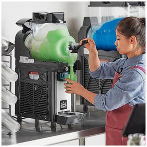 Apresentando controle de espessura ajustável, chassi de aço inoxidável durável, bandeja removível e válvula à prova de vazamentos para fácil limpeza. O bowl single de 6,1 litros oferece alta visibilidade, sendo ideal para ambientes de baixo uso. Perfeito para delícias congeladas como smoothies, slushies e granitas. Este dispensador único certamente impulsionará as vendas de bebidas, mostrando as bebidas refrescantes dentro dele e aumentando a sede dos clientes. Mantenha seus clientes felizes e hidratados com todas as suas deliciosas misturas congeladas dispensadas de forma fácil e eficiente. Feito de um durável chassi de aço inoxidável, bandeja removível e válvula à prova de vazamentos, este dispensador mantém seu processo de bebidas congeladas livre de problemas para servir seus clientes de forma eficiente. O bowl de 6,1 litros claro e livre de BPA oferece alta visibilidade do conteúdo, incentivando potenciais clientes a experimentar suas bebidas. Esta máquina de slushy é ideal apenas para ambientes de baixo uso. Não permita que a máquina funcione por mais de 8 horas seguidas. Este dispensador inclui um controle de espessura do slush no verso do aparelho, proporcionando a consistência perfeita para cada ocasião.
