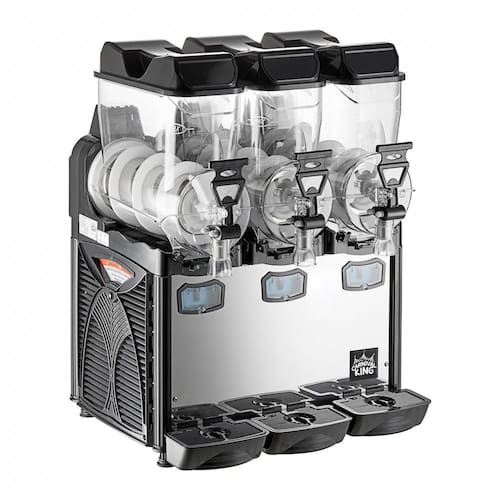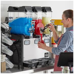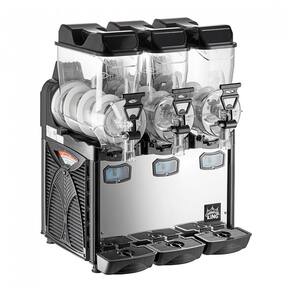 Apresentando controle ajustável de espessura, esta máquina triple permite misturar várias bebidas congeladas de uma só vez. Com estrutura durável de aço inoxidável e bandeja removível para limpeza fácil, é ideal para ambientes de baixo uso. Perfeito para tratar seus clientes com smoothies, slushies e granitas refrescantes, este dispensador triplo certamente impulsionará as vendas. As tigelas transparentes de 9,8 litros oferecem alta visibilidade, atraindo potenciais clientes para experimentarem suas bebidas. Mantenha seus clientes felizes e hidratados com suas deliciosas misturas congeladas servidas de forma fácil e eficiente.