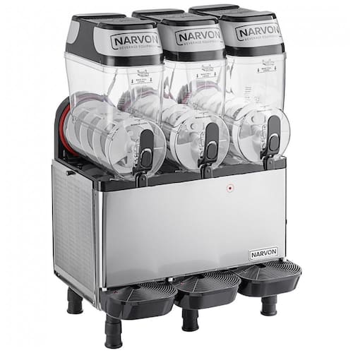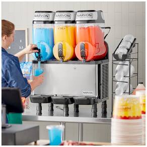 A Máquina de Bebidas Congeladas Narvon SM3 Triple 11 litros é perfeita para servir smoothies, slushies, granitas, chás gelados, limonadas e sucos refrigerados. Com design compacto e iluminação LED nas tigelas, proporciona ótima visibilidade dos produtos. Possui controle digital de temperatura, permitindo ajuste para bebidas congeladas e refrigeradas. As tigelas e componentes são de fácil remoção para limpeza rápida. Com estrutura em aço inoxidável durável e sistema de ventilação eficiente, pode ser usada em ambientes internos e externos. A espessura do slush em cada tigela é facilmente controlada, oferecendo consistência ideal. A operação é simples e sem respingos, graças à válvula sem gotejamento com alça grande. A limpeza diária é descomplicada, sem a necessidade de ferramentas. Aproveite a oportunidade de aumentar as vendas de bebidas exibindo suas especialidades de forma atrativa!