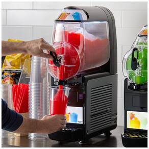 Refresque seus clientes com deliciosas bebidas congeladas de maneira elegante e eficiente com a Máquina de Bebidas Congeladas Vollrath VCBF11837 Single 9,8 Litros! Seja em restaurantes, lojas de conveniência ou bares, esta máquina é indispensável para agilizar e melhorar o serviço de bebidas congeladas. Capaz de preparar desde granitas e smoothies até café/chá gelado ou congelado e coquetéis, este equipamento certamente ampliará seu menu de bebidas. Com um design de uma tigela de 9,8 litros com revestimento claro altamente visível, suas bebidas podem ser facilmente identificadas. Controles intuitivos permitem personalização para diversos estilos de bebida. O sistema de acionamento magnético é confiável, durável e de fácil manutenção. A grande superfície de congelamento e o compressor apropriado reduzem os tempos de congelamento e promovem uma operação eficiente. Além disso, a torneira sem gaxetas facilita a limpeza e a sanitização. Requer conexão elétrica de 110V para operação.