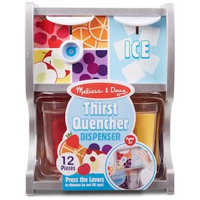 Este dispensador de gelo e bebidas de madeira é perfeito para as crianças brincarem de faz de conta em cozinhas, restaurantes e muito mais. O produto inclui um dispensador, 4 pastilhas de suco, 2 cubos de gelo, 2 xícaras e um cartão de menu reutilizável. As crianças podem escolher entre quatro tipos diferentes de sucos laranja, maçã, ponche de frutas ou uva. Basta colocar os cubos de gelo de plástico duráveis e a inserção para bebidas no dispensador, girar o botão e pressionar a alavanca para que as bebidas geladas caiam nas xícaras. Além disso, este produto ajuda as crianças a desenvolver habilidades motoras finas e de sequenciamento, incentivando brincadeiras imaginativas. É um ótimo presente para crianças em idade pré escolar, de 3 a 6 anos, que gostam de brinquedos práticos feitos com materiais certificados pelo Forest Stewardship Council FSC . A certificação FSC garante que os produtos provêm de florestas geridas de forma responsável que proporcionam benefícios ambientais, sociais e económicos, protegendo as florestas para as gerações futuras.
