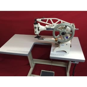 Esta máquina vai completa com mesa e motor, mas o ideal desta máquina é utilizar manualmente ou com pedaleta, igual aos modelos antigos ! A máquina é entregue completa por ser importado desta forma Máquina de Remendo Completa com Mesa Fórmica, Pé de Ferro e Motor .