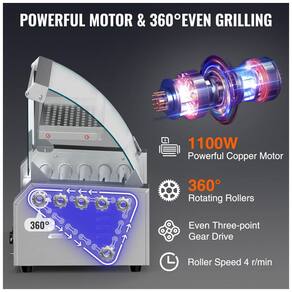 A Máquina de Cachorro-Quente Comercial da Seeutek foi atualizada para oferecer alta qualidade e eficiência. Feita de aço inoxidável 304 de qualidade alimentar, possui 5 rolos antiaderentes que permitem cozinhar até 18 cachorros-quentes de uma só vez! Com controle de temperatura duplo, pode atingir até 248°C. Os rolos giram 360 graus para grelhar os alimentos de maneira uniforme. Com 1100W de potência, pode preparar os alimentos em apenas 15 minutos. Fácil de limpar, com bandeja de gotejamento removível e capa de vidro transparente que evita a entrada de sujeira. Aproveite esse equipamento de alta qualidade para preparar deliciosos cachorros-quentes de forma prática e eficiente.