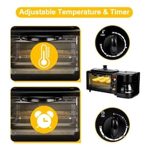 Com uma cafeteira integrada, você pode preparar seu café fresco enquanto assa ou grelha seus alimentos favoritos no forno, ou na frigideira. A frigideira removível permite cozinhar ovos, bacon, panquecas e muito mais, enquanto o forno garante fatias de pão crocantes e douradas em questão de minutos.