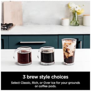 Preparação mais rápida: Prepara uma cápsula de café mais rapidamente em comparação com a Keurig K Elite na inicialização. Fabricante de Café Dupla: Sistema de café em grãos e cápsulas com 9 tamanhos de café em pó xícara pequena, xícara, xícara XL, caneca de viagem, caneca de viagem XL, jarra, jarra, jarra ou jarra completa, além de 4 tamanhos tradicionais de cápsulas 177 ml, 236 ml, 296 ml ou 355 ml. 3 Escolhas de Estilo de Preparação: Selecione entre Classic, Rich ou Over Ice para seus grãos ou cápsulas de café. Café Gelado: Prepare um café fresco com gelo para obter um café gelado saboroso e nunca diluído. Função Manter Quente: A placa de aquecimento ajustável mantém o café quente por até 4 horas. Reservatório Removível: Transporte convenientemente o recipiente de 1,77 litros de água removível para sua pia para fácil enchimento. Plataforma Dobrável de Serviço Único: Eleva sua caneca de café para reduzir respingos de café acabado de fazer. Duo de Extração de Sabor Térmico: Oferece sabor perfeito para grãos e vagens com saturação uniforme e controle preciso de temperatura para um café ultra saboroso. Limpeza Fácil: Função de limpeza, peças próprias para máquina de lavar louça e adaptador de pod Ninja removível permitem que você limpe profundamente sua unidade com facilidade. O que está incluído: Máquina de café quente e gelada Ninja DualBrew, kit de filtro de papel, jarra de vidro para 12 xícaras, adaptador Ninja Pod e colher inteligente Ninja