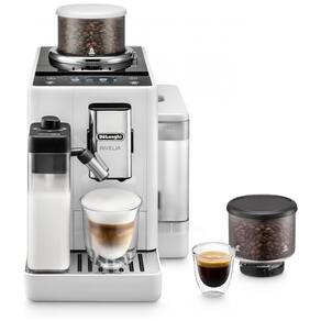 A Máquina de Café Espresso Automática De'Longhi Rivelia na cor branca combina moagem, dosagem, preparo e espumação com operação por toque único. Equipado com dois compartimentos removíveis para feijões com capacidade de 250 g cada, permite alternar rapidamente entre diferentes tipos grãos antes da moagem, feita por moedor cônico com 13 ajustes de granulação.