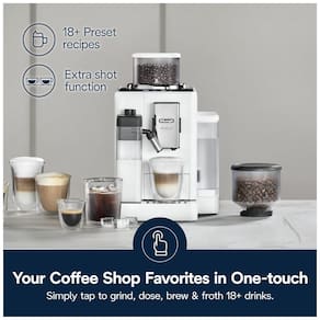O sistema LatteCrema Hot proporciona espuma cremosa para leite e alternativas vegetais, com função de autolimpeza automática. Possui 18 receitas pré-configuradas incluindo espresso, cappuccino, latte, café gelado e mais. Usuários podem ajustar intensidade, volume e adicionar dose extra para personalização. Com tela touchscreen colorida de 3,5 polegadas, oferece navegação fácil e intuitiva. Bomba de pressão de 19 bar garante extração ideal do café. Reservatório removível de água com capacidade de 1,4 litro.