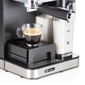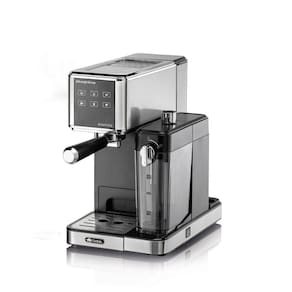 Máquina de café expresso Ariete Ametista 220V com design elegante e compacto, bomba ULKA italiana de 15 bar, display touch screen retroiluminado, tanque de água removível de 1,2 litros e tanque de leite removível de 600ml.Pressão